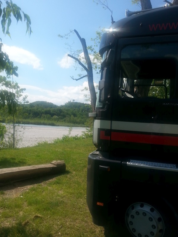 Mit Truck am Tagliamento, Friaul, Mai 2016