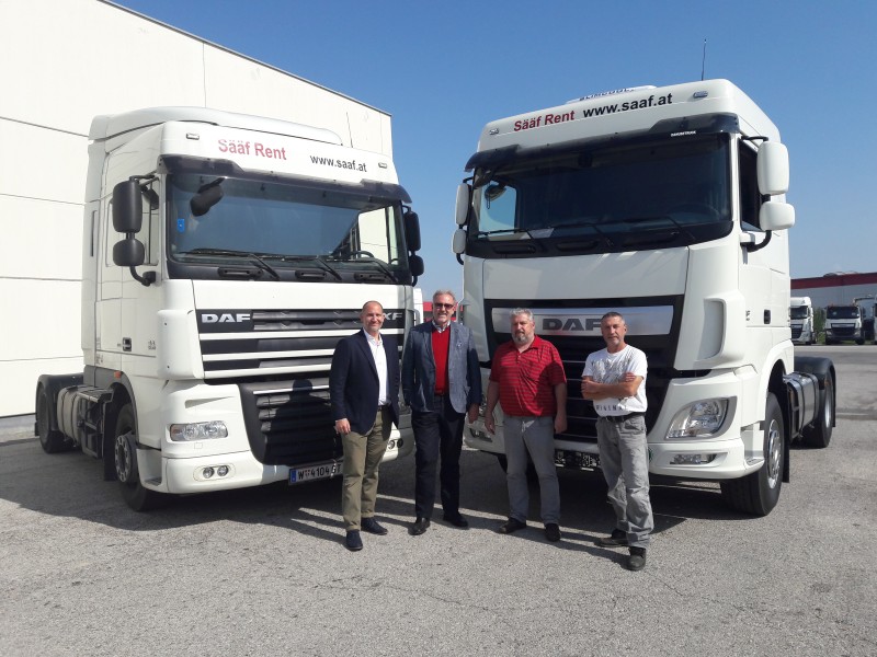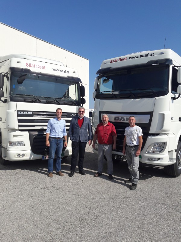 DAF XF 510, der Vierte, Gruppenbild mit Branc, Sääf, Szekatsch, und Weber, April 2018